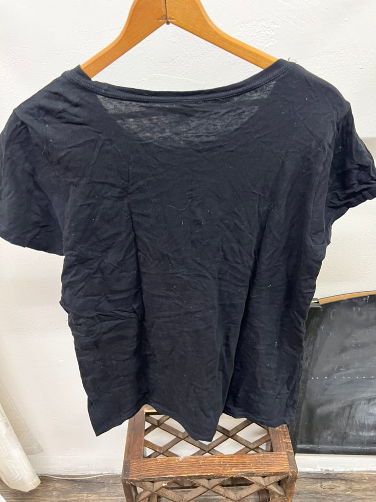 Black Led Zeppelin graphic t-shirt featuring a distressed-style print inspired by the band’s 1977 U.S. tour. Made from 100% cotton with a soft, broken-in feel and a relaxed oversized fit. Shows visible wear and wrinkling consistent with regular use, giving it a true lived-in band tee look. Easy to style casually or oversized with denim, cargos, or layered under a jacket.
